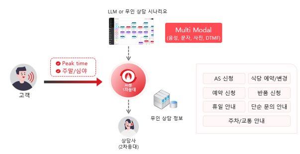 콜 폭주시 또는 근무시간 외 무인으로 서비스 가능 실시간 시나리오 관리 기능을 통해 AS접수, 무인주문, 택배 예약, 병원 예약 등 다양하게 활용 가능